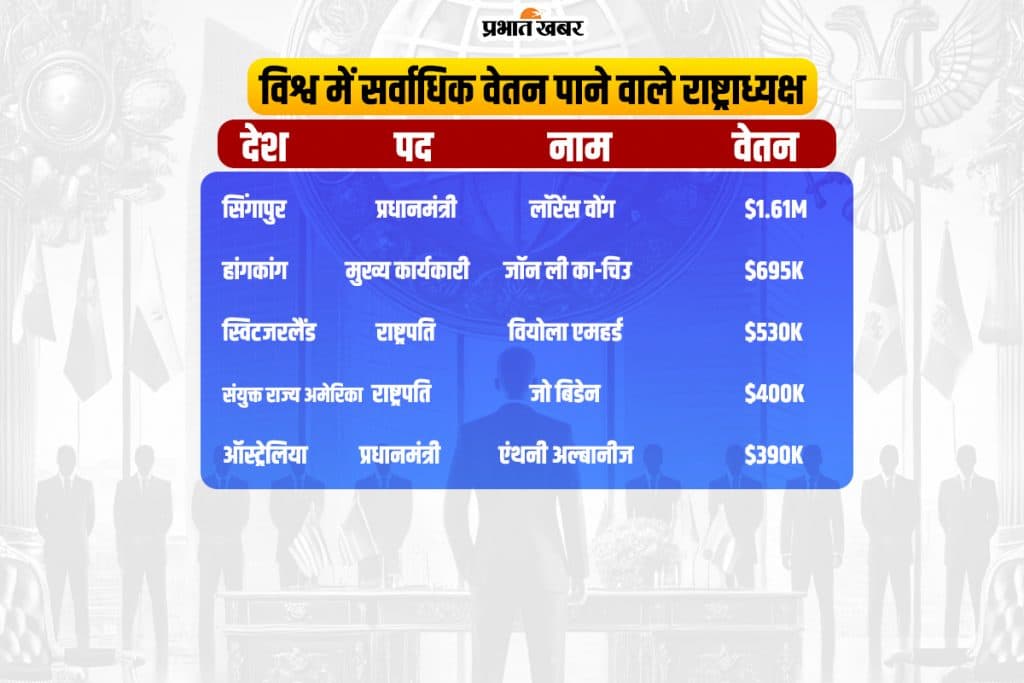 अगर आप यह सोचते हैं कि अमेरिकी राष्ट्रपति को बहुत ज्यादा सैलरी मिलती है, तो आप गलत हैं क्योंकि उनकी सैलरी सिंगापुर के प्रधानमंत्री को उनसे ज्यादा सैलरी मिलती है. हांगकांग के राष्ट्राध्यक्ष को भी उनसे सैलरी मिलती है. चूंकि अमेरिका का राष्ट्रपति जनता का सेवक होता है इसलिए उन्हें उनके काम का भुगतान किया जाता है. अमेरिकी राष्ट्रपति के वेतन और भत्ते का विवरण uscode.house.gov के अनुसार.
