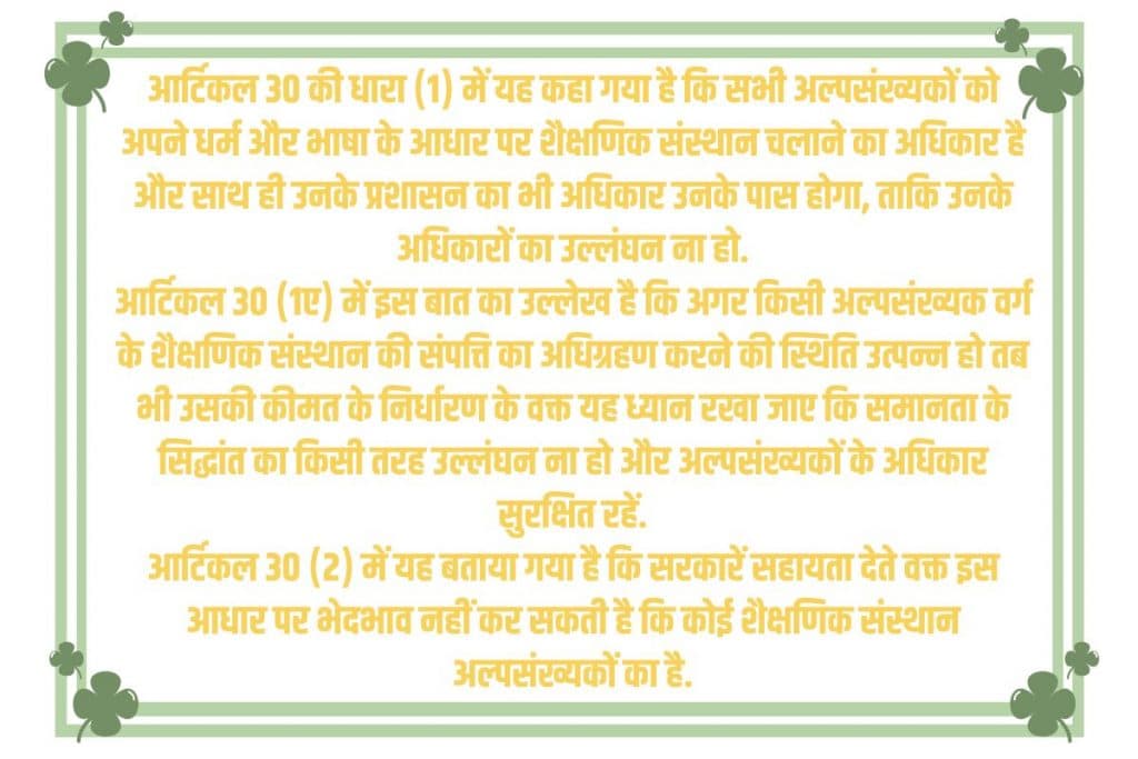 क्या है संविधान का आर्टिकल 30