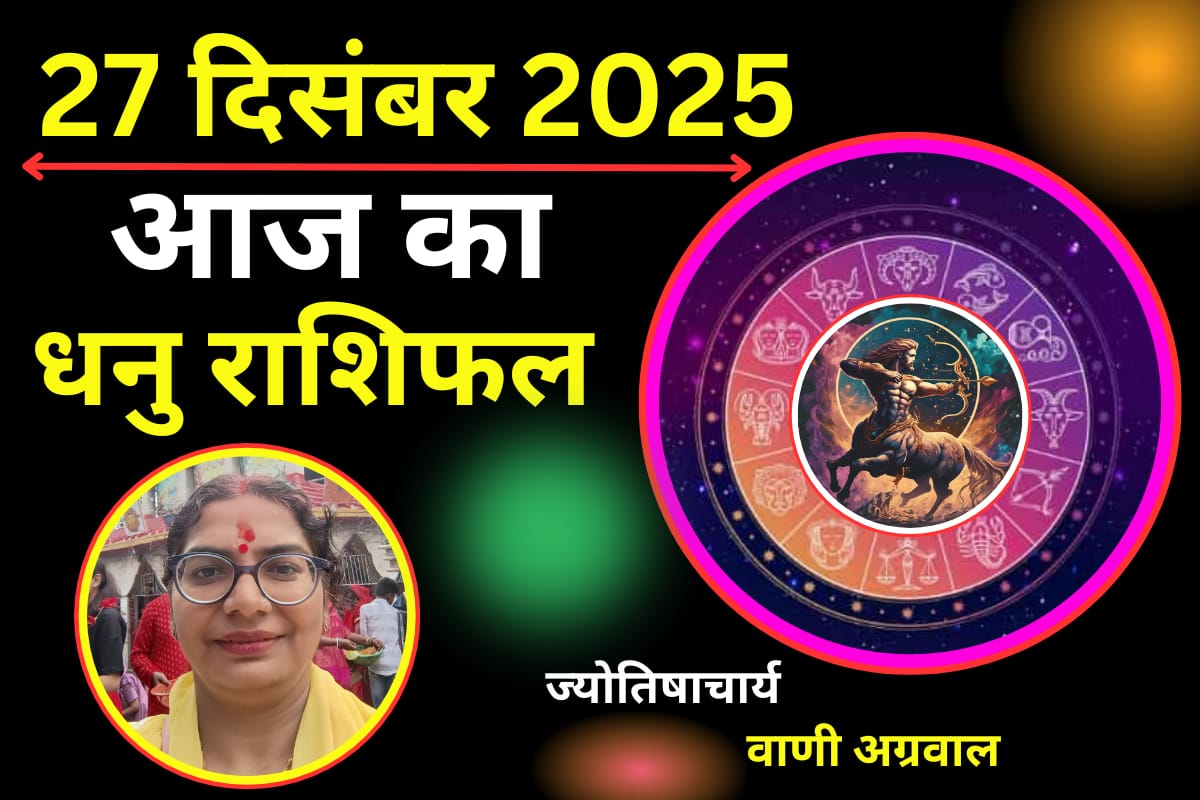 Aaj Ka Dhanu Rashifal 27 December 2025: आज 27 दिसंबर 2025 दिन शनिवार है. पंचांग के अनुसार आज पौष मास के शुक्ल पक्ष की सप्तमी तिथि दिन में 1 बजकर 9 मिनट तक रहेगी. इसके उपरांत अष्टमी तिथि का प्रारंभ होगा . ग्रहों के राजा सूर्य के साथ मंगल और शुक्र अस्त होकर धनु राशि में मौजूद है. वही शनि चंद्रमा के साथ मीन राशि में रहेंगे. बुध वृश्चिक राशि में होंगे, तथा देवगुरु बृहस्पति वक्री होकर मिथुन राशि में चले गए हैं. केतु सिंह राशि में तथा राहु कुंभ राशि में विराजमान रहेंगे. आइए जानते हैं, ज्योतिषाचार्य वाणी अग्रवाल से कैसा रहेगा आपके लिए आज का दिन शनिवार.
