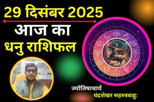 Aaj Ka Dhanu Rashifal 29 December 2025: आज 29 दिसंबर 2025, दिन सोमवार है. पंचांग के अनुसार आज पौष माह के शुक्ल पक्ष की नवमी तिथि रहेगी उपरांत दशमी तिथि हो जाएगी. ग्रहों की स्थिति की बात करें तो सूर्य के साथ मंगल और शुक्र धनु राशि में, चंद्रमा प्रातः 07 बजकर 41 मिनट तक मीन राशि उपरांत मेष राशि मे प्रवेश करेंगे और राहु कुंभ राशि में विराजमान है. बुध वृश्चिक राशि मे दोपहर 01:00 बजे तक रहेंगे उपरांत धनु राशि मे प्रवेश करेंगे , देव गुरु बृहस्पति मिथुन राशि में ,केतु सिंह राशि में स्थित हैं और शनि मीन राशि में स्थित हैं. क्या आप जानना चाहेंगे कि आपका आज का दिन आपकी राशि के अनुसार कैसा रहने वाला हैं. क्या आज रुके हुए कार्य पूरे होंगे? क्या होगा आज का शुभ अंक, कैसा होगा आज का लक्की रंग, इसके बारे में ज्योतिषाचार्य एवं हस्तरेखा विशेषज्ञ चंद्रशेखर सहस्त्रबाहु: ने सटीक आंकलन किया हैं. तो आइए जानते हैं वृषभ राशि के लिए कैसा रहेगा आज का दिन सोमवार ….