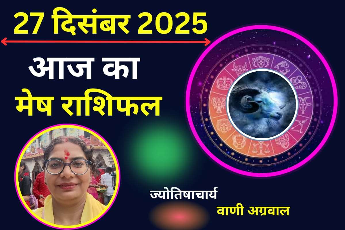 Aaj Ka Mesh Rashifal 27 December 2025: आज 27 दिसंबर 2025 दिन शनिवार है. पंचांग के अनुसार आज पौष मास के शुक्ल पक्ष की सप्तमी तिथि दिन में 1 बजकर 9 मिनट तक रहेगी. इसके उपरांत अष्टमी तिथि का प्रारंभ होगा . ग्रहों के राजा सूर्य के साथ मंगल और शुक्र अस्त होकर धनु राशि में मौजूद है. वही शनि चंद्रमा के साथ मीन राशि में रहेंगे. बुध वृश्चिक राशि में होंगे, तथा देवगुरु बृहस्पति वक्री होकर मिथुन राशि में चले गए हैं. केतु सिंह राशि में तथा राहु कुंभ राशि में विराजमान रहेंगे. आइए जानते हैं, ज्योतिषाचार्य वाणी अग्रवाल से कैसा रहेगा आपके लिए आज का दिन शनिवार.