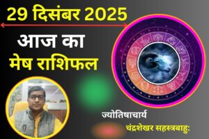 Aaj Ka Mesh Rashifal 29 December 2025: आज 29 दिसंबर 2025, दिन सोमवार है. पंचांग के अनुसार आज पौष माह के शुक्ल पक्ष की नवमी तिथि रहेगी उपरांत दशमी तिथि हो जाएगी. ग्रहों की स्थिति की बात करें तो सूर्य के साथ मंगल और शुक्र धनु राशि में, चंद्रमा प्रातः 07 बजकर 41 मिनट तक मीन राशि उपरांत मेष राशि मे प्रवेश करेंगे और राहु कुंभ राशि में विराजमान है. बुध वृश्चिक राशि मे दोपहर 1:00 बजे तक रहेंगे उपरांत धनु राशि मे प्रवेश करेंगे. देव गुरु बृहस्पति मिथुन राशि में ,केतु सिंह राशि में स्थित हैं और शनि मीन राशि में स्थित हैं. क्या आप जानना चाहेंगे कि आपका आज का दिन आपकी राशि के अनुसार कैसा रहने वाला हैं. क्या आज रुके हुए कार्य पूरे होंगे? क्या होगा आज का शुभ अंक, कैसा होगा आज का लक्की रंग, इसके बारे में ज्योतिषाचार्य एवं हस्तरेखा विशेषज्ञ चंद्रशेखर सहस्त्रबाहु: ने सटीक आंकलन किया हैं. तो आइए जानते हैं मेष राशि के लिए कैसा रहेगा आज का दिन सोमवार