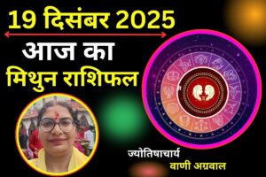 Aaj Ka Mithun Rashifal 19 December 2025: मिथुन राशि- आज का दिन मिथुन राशि वालों के लिए तेज सोच और सही निर्णय लेने का है. सुबह मन थोड़ा अस्थिर रह सकता है. परंतु दिन बढ़ने के साथ विचारों में स्थिरता आएगी. पुरानी समस्याओं का हल मिलेगा और आप आज सही दिशा में आगे बढेंगे.