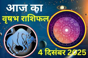 Aaj Ka Vrishabh Rashifal 4 December 2025: वृषभ राशि- आज व्यापार में लाभ का योग प्रबल है. आज आपके द्वारा किए गए प्रयास सार्थक होंगे. नए संपर्क बनने से आर्थिक स्थिति मजबूत होगी. बेरोजगारी दूर होगी. आज घर-परिवार में सौहार्द बना रहेगा. सामाजिक कार्यों में रुचि बढ़ेगी. आज बेरोजगार जातकों को शुभ सूचना मिल सकती है. आज धन लाभ के नए स्रोत खुलेंगे. किसी पुराने विवाद का हल निकल सकता है. संतान की शिक्षा या करियर से जुड़ी संतोषजनक समाचार मिलेगा. आज आपका स्वास्थ्य सामान्य रहेगा. किसी यात्रा पर जाने का अवसर मिल सकता हैं. प्रियजनों का पूर्ण सहयोग मिलेगा. व्यावसायिक यात्रा सफल रहेगी. परिवार में सुखद वातावरण रहेगा.
