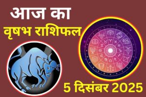 Aaj Ka Vrishabh Rashifal 5 December 2025: वृषभ राशि- आज व्यापार में लाभ के नए अवसर आएंगे. मन में उत्साह बना रहेगा. आज रुके हुए कार्य आसानी से पुरे होंगे. परिवार में सामंजस्य बना रहेगा. प्रियजनों का मार्गदर्शन मलने से लाभ होगा. सामाजिक प्रतिष्ठा बढ़ेगी. आज आर्थिक स्तिथि बेहतर रहेगी. आज आय में वृद्धि होगी. नौकरीपेशा लोगों को पदोन्नति के संकेत हैं. परिवार में शुभ समाचार मिल सकता है. प्रेम संबंधों में नई शुरुआत हो सकती है. विद्यार्थियों के लिए समय उत्तम है. स्वास्थ्य में सुधार होगा, लेकिन भोजन पर संयम रखें. नए निवेश और पार्टनरशिप व्यापारियों के लिए सही साबित होगा. किसी वरिष्ठ अधिकारी की सलाह आपके लिए लाभकारी होगी. पारिवारिक वातावरण सकारात्मक रहेगा.