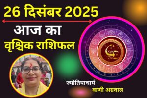 Aaj ka vrishchik rashifal 26 December 2025: आज 26 दिसंबर 2025 दिन शुक्रवार है पंचांग के अनुसार आज पौष माह की शुक्ल पक्ष की षष्ठी तिथि 1:43 दिन तक रहेगी ,इसके बाद सप्तमी तिथि आरंभ होगी. ग्रहों के राजा सूर्य, मंगल एवं शुक्र के साथ धनु राशि में उपस्थित है. वही चंद्रमा राहु के साथ कुंभ राशि में रहेंगे. शनि मीन राशि में है तथा गुरुदेव बृहस्पति मिथुन राशि में वक्री होकर विराजमान है. केतु सिंह राशि में और बुद्ध वृश्चिक राशि में बैठे हैं. आइए जानते हैं ज्योतिषाचार्य वाणी अग्रवाल से आज का दिन कैसा रहेगा.