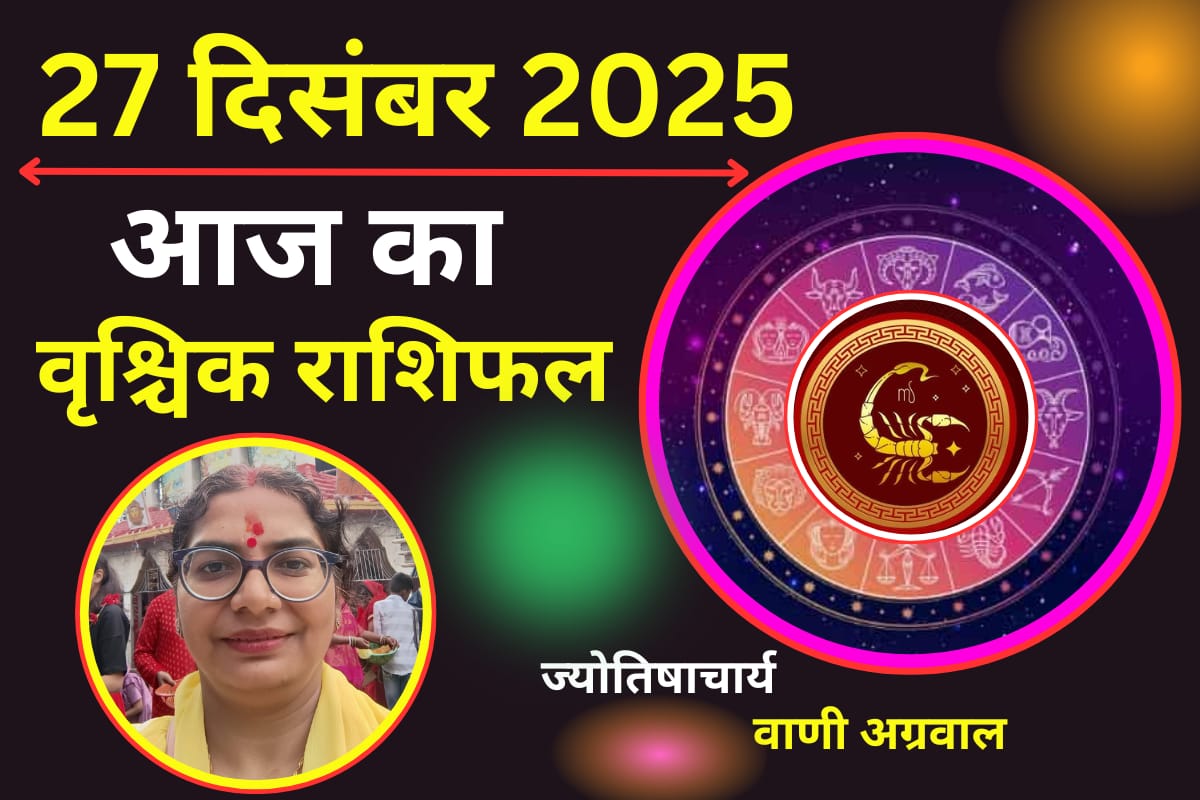 Aaj Ka Vrishchik Rashifal 27 December 2025: आज 27 दिसंबर 2025 दिन शनिवार है. पंचांग के अनुसार आज पौष मास के शुक्ल पक्ष की सप्तमी तिथि दिन में 1 बजकर 9 मिनट तक रहेगी. इसके उपरांत अष्टमी तिथि का प्रारंभ होगा . ग्रहों के राजा सूर्य के साथ मंगल और शुक्र अस्त होकर धनु राशि में मौजूद है. वही शनि चंद्रमा के साथ मीन राशि में रहेंगे. बुध वृश्चिक राशि में होंगे, तथा देवगुरु बृहस्पति वक्री होकर मिथुन राशि में चले गए हैं. केतु सिंह राशि में तथा राहु कुंभ राशि में विराजमान रहेंगे. आइए जानते हैं, ज्योतिषाचार्य वाणी अग्रवाल से कैसा रहेगा आपके लिए आज का दिन शनिवार.