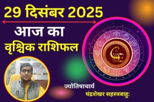 Aaj Ka Vrishchik Rashifal 29 December 2025: आज 29 दिसंबर 2025, दिन सोमवार है. पंचांग के अनुसार आज पौष माह के शुक्ल पक्ष की नवमी तिथि रहेगी उपरांत दशमी तिथि हो जाएगी. ग्रहों की स्थिति की बात करें तो सूर्य के साथ मंगल और शुक्र धनु राशि में, चंद्रमा प्रातः 07 बजकर 41 मिनट तक मीन राशि उपरांत मेष राशि मे प्रवेश करेंगे और राहु कुंभ राशि में विराजमान है. बुध वृश्चिक राशि मे दोपहर 01:00 बजे तक रहेंगे उपरांत धनु राशि मे प्रवेश करेंगे , देव गुरु बृहस्पति मिथुन राशि में ,केतु सिंह राशि में स्थित हैं और शनि मीन राशि में स्थित हैं. क्या आप जानना चाहेंगे कि आपका आज का दिन आपकी राशि के अनुसार कैसा रहने वाला हैं. क्या आज रुके हुए कार्य पूरे होंगे? क्या होगा आज का शुभ अंक, कैसा होगा आज का लक्की रंग, इसके बारे में ज्योतिषाचार्य एवं हस्तरेखा विशेषज्ञ चंद्रशेखर सहस्त्रबाहु: ने सटीक आंकलन किया हैं. तो आइए जानते हैं वृषभ राशि के लिए कैसा रहेगा आज का दिन सोमवार ….
