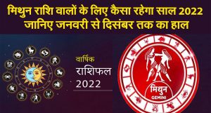 New Year 2022 Varshik Rashifal: मिथुन राशिफल 2022 (Mithun Rashifal 2022) आने वाले नए साल 2022 में मिथुन राशि के जातकों के जीवन के बारे में बहुत कुछ ज़रूरी और महत्वपूर्ण भविष्यवाणियां प्रदान करता है. आइए आने वाला वर्ष आपके पारिवारिक जीवन, प्रेम संबंध, आर्थिक स्थिति और स्वास्थ्य की दृष्टि से कैसा रहने वाला हैं.
