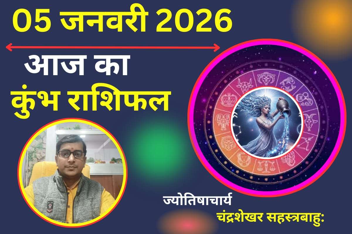 Kumbh Aaj Ka Rashifal 05 January 2026: आज 05 जनवरी 2026 , दिन सोमवार है. पंचांग के अनुसार आज माघ, कृष्ण पक्ष, द्वितीया तिथि दोपहर 1 बजकर 21 मिनट तक रहेगी उपरांत तृतीया तिथि हो जाएगी. ग्रहों की स्थिति की बात करें तो सूर्य के साथ मंगल, बुध और शुक्र धनु राशि में, चंद्रमा कर्क राशि मे विराजमान रहेंगे और राहु कुंभ राशि में विराजमान है. देव गुरु बृहस्पति मिथुन राशि में, केतु सिंह राशि में स्थित हैं और शनि मीन राशि में स्थित हैं. क्या आप जानना चाहेंगे कि आपका आज का दिन आपकी राशि के अनुसार कैसा रहने वाला हैं. क्या आज रुके हुए कार्य पूरे होंगे? क्या होगा आज का शुभ अंक, कैसा होगा आज का लक्की रंग, इसके बारे में ज्योतिषाचार्य एवं हस्तरेखा विशेषज्ञ चंद्रशेखर सहस्त्रबाहु: ने सटीक आंकलन किया हैं. तो आइए जानते हैं कुंभ राशि के लिए कैसा रहेगा आज का दिन सोमवार….