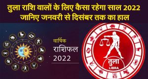 New Year 2022 Varshik Rashifal: तुला राशिफल 2022 (Tula Rashifal 2022) आने वाले नए साल 2022 में तुला राशि के जातकों के जीवन के बारे में बहुत कुछ ज़रूरी और महत्वपूर्ण भविष्यवाणियां प्रदान करता है. आइए आने वाला वर्ष आपके पारिवारिक जीवन, प्रेम संबंध, आर्थिक स्थिति और स्वास्थ्य की दृष्टि से कैसा रहने वाला हैं.