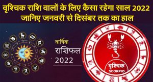 New Year 2022 Varshik Rashifal: वृश्चिक राशिफल 2022 (Vrishchik Rashifal 2022) आने वाले नए साल 2022 में वृश्चिकराशि के जातकों के जीवन के बारे में बहुत कुछ ज़रूरी और महत्वपूर्ण भविष्यवाणियां प्रदान करता है. आइए आने वाला वर्ष आपके पारिवारिक जीवन, प्रेम संबंध, आर्थिक स्थिति और स्वास्थ्य की दृष्टि से कैसा रहने वाला हैं.