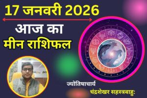 Meen Aaj Ka Rashifal 17 January 2026: आज 17 जनवरी 2026 दिन शनिवार है. पंचांग के अनुसार माघ कृष्ण पक्ष चतुर्दशी तिथि रात 11 बजकर 52 मिनट तक रहेगी उपरांत अमावस्या तिथि हो जाएगी. ग्रहों की स्थिति की बात करें तो सूर्य के साथ मंगल और शुक्र आज मकर राशि मे विराजमान है . बुध सुबह 10 बजकर 27 मिनट तक धनु राशि मे रहेंगे उपरांत मकर राशि मे गोचर करेंगे. चंद्रमा धनु राशि में विराजमान हैं. राहु कुंभ राशि में स्थित है. देवगुरु बृहस्पति मिथुन राशि में, केतु सिंह राशि में और शनि मीन राशि में स्थित हैं. आइए जानते हैं पिछले एक दशक से भी अधिक समय से कार्यरत ज्योतिषाचार्य एवं हस्तरेखा विशेषज्ञ चंद्रशेखर सहस्त्रबाहु: से मीन राशि के लिए कैसा रहेगा आज का दिन शनिवार.