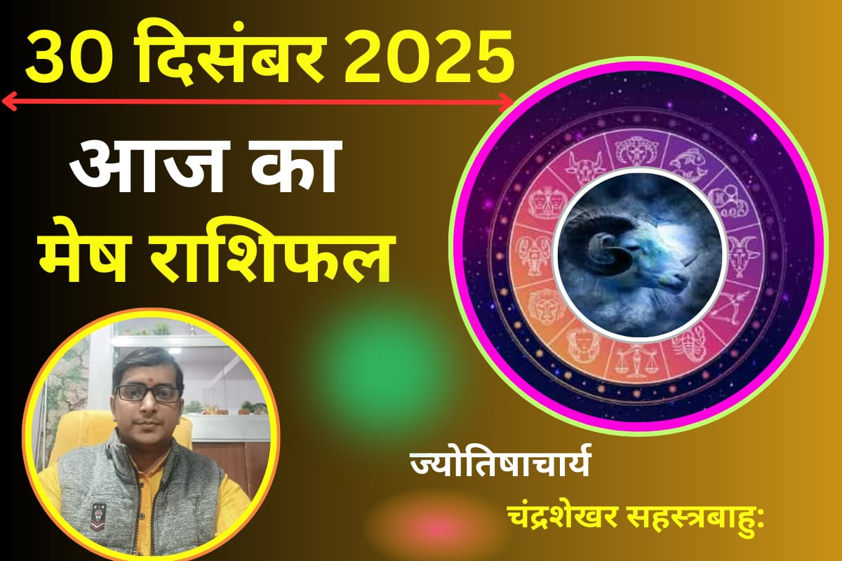 Mesh Aaj Ka Rashifal 30 December 2025: आज 30 दिसंबर 2025, दिन मंगलवार है. पंचांग के अनुसार आज पौष माह के शुक्ल पक्ष की एकादशी रहेगी उपरांत द्वादशी तिथि हो जाएगी. ग्रहों की स्थिति की बात करें तो सूर्य के साथ मंगल,बुध और शुक्र धनु राशि में, चंद्रमा मेष राशि मे और राहु कुंभ राशि में विराजमान है. देव गुरु बृहस्पति मिथुन राशि में, केतु सिंह राशि में स्थित हैं और शनि मीन राशि में स्थित हैं. क्या आप जानना चाहेंगे कि आपका आज का दिन आपकी राशि के अनुसार कैसा रहने वाला हैं. क्या आज रुके हुए कार्य पूरे होंगे? क्या होगा आज का शुभ अंक, कैसा होगा आज का लक्की रंग, इसके बारे में ज्योतिषाचार्य एवं हस्तरेखा विशेषज्ञ चंद्रशेखर सहस्त्रबाहु: ने सटीक आंकलन किया हैं. तो आइए जानते हैं मेष राशि के लिए कैसा रहेगा आज का दिन मंगलवार.