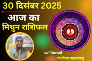 Mithun aaj Ka Rashifal 30 December 2025: आज 30 दिसंबर 2025, दिन मंगलवार है. पंचांग के अनुसार आज पौष माह के शुक्ल पक्ष की एकादशी रहेगी उपरांत द्वादशी तिथि हो जाएगी . ग्रहों की स्थिति की बात करें तो सूर्य के साथ मंगल,बुध और शुक्र धनु राशि में, चंद्रमा मेष राशि मे और राहु कुंभ राशि में विराजमान है. देव गुरु बृहस्पति मिथुन राशि में ,केतु सिंह राशि में स्थित हैं और शनि मीन राशि में स्थित हैं. क्या आप जानना चाहेंगे कि आपका आज का दिन आपकी राशि के अनुसार कैसा रहने वाला हैं. क्या आज रुके हुए कार्य पूरे होंगे? क्या होगा आज का शुभ अंक, कैसा होगा आज का लक्की रंग, इसके बारे में ज्योतिषाचार्य एवं हस्तरेखा विशेषज्ञ चंद्रशेखर सहस्त्रबाहु: ने सटीक आंकलन किया हैं. तो आइए जानते हैं मिथुन राशि के लिए कैसा रहेगा आज का दिन मंगलवार ….