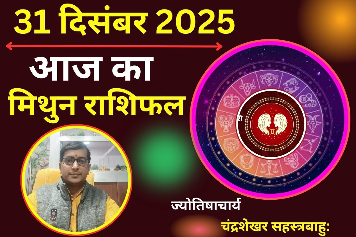 Mithun Aaj Ka Rashifal 31 December 2025: आज 31 दिसंबर 2025, दिन बुधवार है. पंचांग के अनुसार आज पौष माह के शुक्ल पक्ष की द्वादशी तिथि रहेगी . ग्रहों की स्थिति की बात करें तो सूर्य के साथ मंगल,बुध और शुक्र धनु राशि में, चंद्रमा मेष राशि में सुबह 09 बजकर 23 मिनट तक रहेंगे. उसके बाद वृषभ राशि में प्रवेश करेंगे और राहु कुंभ राशि में विराजमान है. देव गुरु बृहस्पति मिथुन राशि में ,केतु सिंह राशि में स्थित हैं और शनि मीन राशि में स्थित हैं. क्या आप जानना चाहेंगे कि आपका आज का दिन आपकी राशि के अनुसार कैसा रहने वाला हैं. क्या आज रुके हुए कार्य पूरे होंगे? क्या होगा आज का शुभ अंक, कैसा होगा आज का लक्की रंग, इसके बारे में ज्योतिषाचार्य एवं हस्तरेखा विशेषज्ञ चंद्रशेखर सहस्त्रबाहु: ने सटीक आंकलन किया हैं. तो आइए जानते हैं मिथुन राशि के लिए कैसा रहेगा आज का दिन बुधवार….