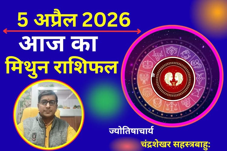 Aaj Ka Mithun Rashifal 05 April 2026: आज मिथुन राशि के जातकों के लिए गुरु का गोचर आत्मविश्वास में वृद्धि करेगा. कर्म भाव में सूर्य-शनि की स्थिति कार्यक्षेत्र में आपके प्रभाव को बढ़ाएगी. दोपहर के बाद चंद्रमा का गोचर मानसिक चंचलता दे सकता है. महत्वपूर्ण निर्णयों को लेने के लिए दिन का पहला भाग अधिक श्रेष्ठ है.