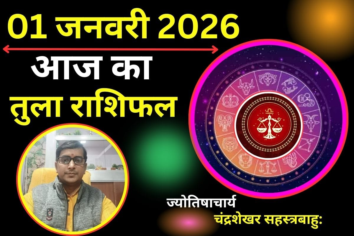 Tula Aaj Ka Rashifal 01 January 2026 : आज 01 जनवरी 2026, दिन गुरुवार है. पंचांग के अनुसार आज पौष माह के शुक्ल पक्ष त्रयोदशी तिथी रात 11 बजकर 39 मिनट तक रहेगी, उपरांत चतुर्दशी तिथि हो जाएगी. ग्रहों की स्थिति की बात करें तो सूर्य के साथ मंगल, बुध और शुक्र धनु राशि में, चंद्रमा वृषभ राशि मे विराजमान है और राहु कुंभ राशि में विराजमान है. देव गुरु बृहस्पति मिथुन राशि में, केतु सिंह राशि में स्थित हैं और शनि मीन राशि में स्थित हैं. क्या आप जानना चाहेंगे कि आपका आज का दिन आपकी राशि के अनुसार कैसा रहने वाला हैं. क्या आज रुके हुए कार्य पूरे होंगे? क्या होगा आज का शुभ अंक, कैसा होगा आज का लक्की रंग, इसके बारे में ज्योतिषाचार्य एवं हस्तरेखा विशेषज्ञ चंद्रशेखर सहस्त्रबाहु: ने सटीक आंकलन किया हैं. तो आइए जानते हैं तुला राशि के लिए कैसा रहेगा आज साल का पहला दिन गुरुवार…