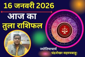 Tula Aaj Ka Rashifal 16 January 2026: आज 16 जनवरी 2026 दिन शुक्रवार है. पंचांग के अनुसार माघ कृष्ण पक्ष त्रयोदशी तिथि रात 10 बजकर 10 मिनट तक रहेगी उपरांत चतुर्दशी तिथि हो जाएगी. ग्रहों की स्थिति की बात करें तो सूर्य के साथ मंगल और शुक्र आज मकर राशि मे विराजमान है . बुध और चंद्रमा धनु राशि में विराजमान हैं. राहु कुंभ राशि में स्थित है. देवगुरु बृहस्पति मिथुन राशि में, केतु सिंह राशि में और शनि मीन राशि में स्थित हैं. आइए जानते हैं पिछले एक दशक से भी अधिक समय से कार्यरत ज्योतिषाचार्य एवं हस्तरेखा विशेषज्ञ चंद्रशेखर सहस्त्रबाहु: से तुला राशि के लिए कैसा रहेगा आज का दिन शुक्रवार.