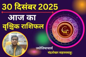 Vrishchak Aaj Ka Rashifal 30 December 2025: आज 30 दिसंबर 2025, दिन मंगलवार है. पंचांग के अनुसार आज पौष माह के शुक्ल पक्ष की एकादशी रहेगी उपरांत द्वादशी तिथि हो जाएगी . ग्रहों की स्थिति की बात करें तो सूर्य के साथ मंगल,बुध और शुक्र धनु राशि में, चंद्रमा मेष राशि मे और राहु कुंभ राशि में विराजमान है. देव गुरु बृहस्पति मिथुन राशि में ,केतु सिंह राशि में स्थित हैं और शनि मीन राशि में स्थित हैं. क्या आप जानना चाहेंगे कि आपका आज का दिन आपकी राशि के अनुसार कैसा रहने वाला हैं. क्या आज रुके हुए कार्य पूरे होंगे? क्या होगा आज का शुभ अंक, कैसा होगा आज का लक्की रंग, इसके बारे में ज्योतिषाचार्य एवं हस्तरेखा विशेषज्ञ चंद्रशेखर सहस्त्रबाहु: ने सटीक आंकलन किया हैं. तो आइए जानते हैं वृश्चिक राशि के लिए कैसा रहेगा आज का दिन मंगलवार ….