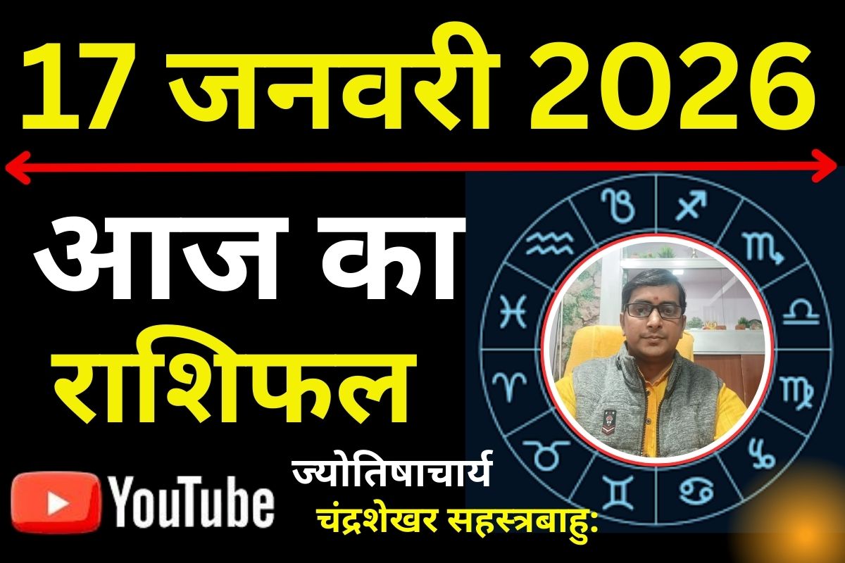 Aaj Ka Rashifal 17 January 2026: आज 17 जनवरी 2026 दिन शनिवार है. पंचांग के अनुसार माघ कृष्ण पक्ष चतुर्दशी तिथि रात 11 बजकर 52 मिनट तक रहेगी उपरांत अमावस्या तिथि हो जाएगी. ग्रहों की स्थिति की बात करें तो सूर्य के साथ मंगल और शुक्र आज मकर राशि मे विराजमान है. बुध सुबह 10 बजकर 27 मिनट तक धनु राशि मे रहेंगे उपरांत मकर राशि मे गोचर करेंगे. चंद्रमा धनु राशि में विराजमान हैं. राहु कुंभ राशि में स्थित है. देवगुरु बृहस्पति मिथुन राशि में, केतु सिंह राशि में और शनि मीन राशि में स्थित हैं. आइए जानते हैं पिछले एक दशक से भी अधिक समय से कार्यरत ज्योतिषाचार्य एवं हस्तरेखा विशेषज्ञ चंद्रशेखर सहस्त्रबाहु: से मेष से मीन तक सभी 12 राशि वालों के लिए कैसा रहेगा आज का दिन शनिवार.चंद्रशेखर सहस्त्रबाहु: ज्योतिष एवं हस्त रेखा विशेषज्ञ | 12 साल का अनुभव Mo- +91 8620920581