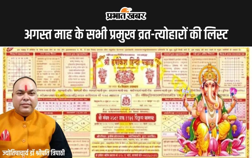 August 2024 Vrat Tyohar List: अगस्त महीने की शुरुआत होने जा रही है. आइए जानते है कि अगस्त माह में पड़ने वाले प्रमुख व्रत त्योहारों की लिस्ट