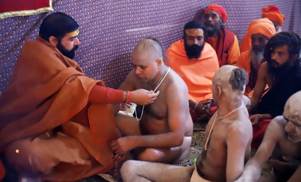 श्री शंभू पंच अग्नि अखाड़ा में दीक्षा लेते हुए ब्रह्मचारी