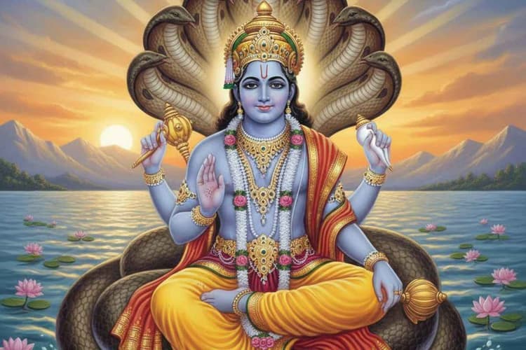 शान्ताकारं भुजगशयनं पद्मनाभं सुरेशं, विश्वाधारं गगनसदृशं मेघवर्णं शुभाङ्गम्।