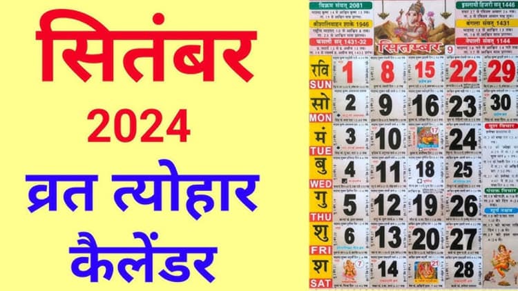 September 2024 Festivals List: भाद्रपद माह के कृष्ण पक्ष की चतुर्दशी तिथि के साथ सितंबर माह का आरंभ हो रहा है. इस महीने में भाद्रपद के साथ-साथ आश्विन माह पड़ेगा. व्रत त्योहार के लिए यह माह खास है. सितंबर में भाद्र अमावस्या, हरितालिका तीज, गणेश चतुर्थी, ऋषि पंचमी के साथ-साथ विश्वकर्मा पूजा जैसे कई बड़े व्रत व त्योहार होंगे. इतना ही नहीं इसी माह पितृ पक्ष भी शुरू हो रहा है. हर साल भाद्रपद माह के कृष्ण पक्ष की चतुर्थी तिथि को गणेश चतुर्थी का व्रत किया जाता है. इस बार यह शुभ तिथि सात सितंबर को है. इस तिथि का संबंध भगवान गणेश के जन्म से है, इसलिए इस दिन विधिपूर्वक भगवान गणेश की पूजा-अर्चना की जाती है.