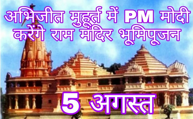 Ram Mandir Bhoomi Pujan: अगले सप्ताह अयोध्या में भव्य राम मंदिर का निर्माण कार्य शुरू हो जाएगा. 5 अगस्त को पीएम मोदी अयोध्या राम मंदिर का भूमि पूजन करेंगे. 5 अगस्त को अयोध्या राम मंदिर का भूमि पूजन होते ही राम मंदिर निर्माण कार्य शुरू हो जाएगा. 5 अगस्त दिन बुधवार को दोपहर अभिजीत मुहूर्त में पीएम नरेंद्र मोदी भव्य राम मंदिर निर्माण का भूमिपूजन करेंगे.