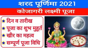 इस बार शरद पूर्णिमा या कोजागरी पूर्णिमा 19 अक्टूबर, 2021, मंगलवार को मानई जाएगी.