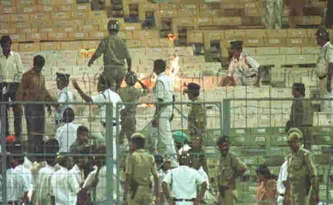 बस क्या था दर्शकों ने मैदान पर बोतलें फेंकना शुरू कर दिया. बोतलों के साथ-साथ मैदान पर पत्‍थर भी फेंके जाने लगे. दर्शकों के गुस्‍से को देखते हुए मैच को रोक दिया गया. उस समय क्रीज पर विनोद कांबली 10 रन और अनिल कुंबले शून्‍य के स्‍कोर पर जमे थे. काफी देर दर्शकों का हुड़दंब जारी रहने के बाद श्रीलंका को जीत दे दिया गया. उस दिन को भारतीय क्रिकेट का ‘काला दिन’ कहा गया. उसी मैच में विनोद कांबली ने मैदान पर ही रो दिया था.
