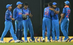 मैथ्यूज ने अगली गेंद पर रोहित को विकेटकीपर डिकवेला के हाथों कैच कराया. पांडे ने मैथ्यूज को हैट्रिक से रोका, लेकिन लोकेश राहुल (07) एक बार फिर विफल रहे और धनंजय की गेंद पर पवेलियन लौट गये जिससे भारत का स्कोर पांच विकेट पर 274 रन हो गया. भारतीय पारी को संवारने की जिम्मेदारी एक बार फिर पूर्व कप्तान धोनी के कंधों पर थी. पांडे ने 43वें ओंवर में श्रीवर्धने पर चौका मारा, जबकि धोनी ने भी इसी ओवर में चार रन के साथ टीम का स्कोर 300 रन के पार पहुंचाया. धोनी ने मलिंगा पर छक्के के साथ 48वें ओवर में भारत का स्कोर 350 रन के पार किया. पांडे ने मलिंगा की पारी की अंतिम गेंद पर एक रन के साथ अर्धशतक पूरा किया. धोनी ने वनडे क्रिकेट में 73वीं बार नाबाद वापस लौटकर नया रिकाॅर्ड बनाया. उन्होंने दक्षिण अफ्रीका के शान पोलाक और श्रीलंका के वास (दोनों 72 बार नाबाद) को पीछे छोड़ा.
