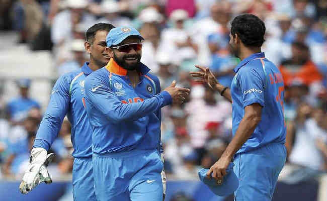 भारतीय बल्लेबाजों ने इस प्रकार रन बनाये. रोहित शर्मा (7), अजिंक्य रहाणे (55), मनीष पांडे (3),केदार जाधव (24), कप्तान विराट कोहली (92), महेंद्र सिंह धौनी (5) और भुवनेश्वर कुमार (20) रन.