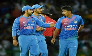 भारत : रोहित शर्मा (कप्तान), शिखर धवन, अजिंक्य रहाणे, श्रेयस अय्यर, मनीष पांडे, केदार जाधव, दिनेश कार्तिक, धौनी (विकेटकीपर), हार्दिक, अक्षर पटेल, कुलदीप, युजवेंद्र चहल, जसप्रीत बुमरा, भुवनेश्वर, सिद्धार्थ कौल.