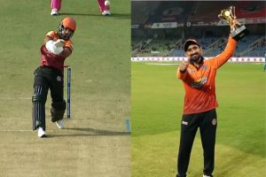 KCL 2025: केरल क्रिकेट लीग में दर्शकों का खूब मनोरंजन हां रहा है. सलमान निजार ने शनिवार को तिरुवनंतपुरम के ग्रीनफील्ड स्टेडियम में कालीकट ग्लोबस्टर्स और अदानी त्रिवेंद्रम रॉयल्स के बीच केरल क्रिकेट लीग मैच के दौरान अपनी आखिरी 13 गेंदों पर 11 छक्के लगाए. निजार ने अभिजीत प्रवीण द्वारा डाले गए 20वें ओवर में छह छक्के लगाकर 40 रन बटोरे, शेष चार रन एक वाइड और एक नो बॉल पर दो रन से आए.