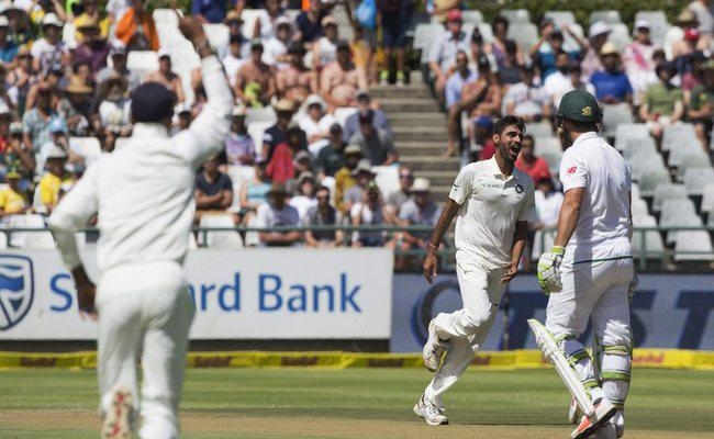अपना पहला टेस्ट मैच खेल रहे जसप्रीत बुमराह (73 रन देकर एक विकेट) और युवा आलराउंडर हार्दिक पंड्या (53 रन देकर एक विकेट) ने डिविलियर्स और डुप्लेसिस की खतरनाक जोडी को पवेलियन भेजकर भारत को बड़ी राहत दिलायी. बुमराह ने डिविलियर्स को आउट करके अपना पहला टेस्ट विकेट लिया. उनकी कोण लेती गेंद इस पूर्व कप्तान के बल्ले का अंदरुनी किनारा लेकर आॅफ स्टंप हिला गयी. इसके तीन ओवर बाद पंड्या ने डुप्लेसिस को विकेट के पीछे कैच कराया. इससे पहलीवाली गेंद पर पंड्या ने दक्षिण अफ्रीकी कप्तान को पगबाधा कर दिया था, लेकिन डीआरएस में फैसला बदल दिया गया. इस बीच डुप्लेसिस ने अपना 16वां टेस्ट अर्धशतक पूरा किया. आउट होने से पहले डिविलियर्स ने प्रवाहमय बल्लेबाजी की और अपनी 84 गेंद की पारी में 11 चौके जमाये, जबकि डुप्लेसिस ने सकारात्मक अंदाज में बल्लेबाजी की. उन्होंने 104 गेंदें खेली तथा 12 चौके लगाये.
