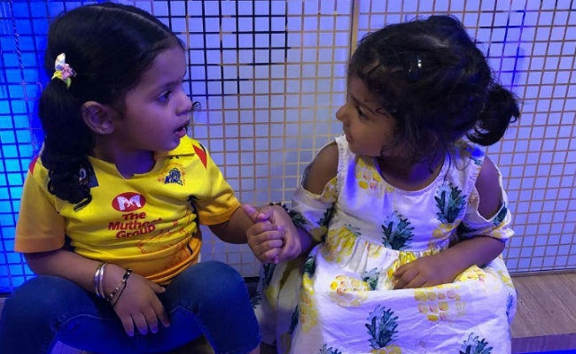 जब वानखेड़े में चेन्नई की टीम ने मैच जीत लिया तो पूरा स्टेडियम खुशी से झूम उठा. स्टेडियम में बड़ी संख्या में चेन्नई के फैन्स मौजूद थे. लेकिन उन सब में कुछ ऐसे फैन्स भी मैदान पर मौजूद थे जिसने हर कोई का ध्यान अपनी ओर खींचा. जी, हां. शिनवार को खेले गये मुकाबले को देखने के लिए तीन क्यूट फैन्स भी आये. जिसमें एक कैप्टन कूल की बेटी जीवा, दूसरी हरभजन सिंह की बेटी हिनाया और सुरेश रैना की बेटी ग्रेसिया शामिल थी.