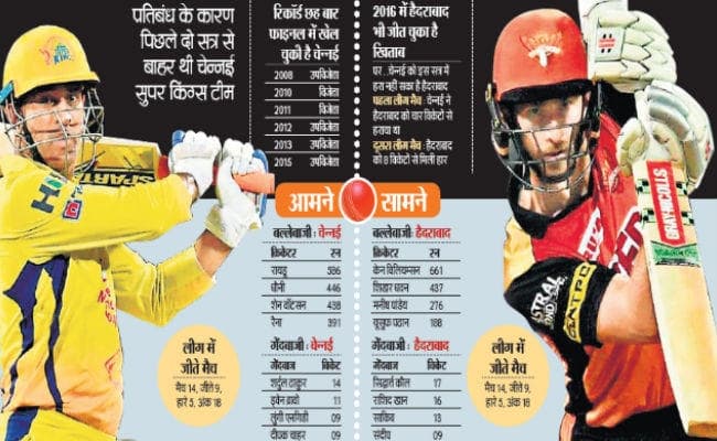 मुंबई : करिश्माई कप्तान महेंद्र सिंह धौनी की चेन्नई सुपर किंग्स शीर्ष पर रही सनराइजर्स हैदराबाद से मंगलवार को इंडियन प्रीमियर लीग के पहले क्वालिफायर में खेलेगी, तो रोमांच की गारंटी वाले इस मैच में बल्ले और गेंद की जबर्दस्त जंग देखने को मिलेगी.