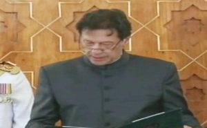 इस्लामाबाद :पाकिस्तान तहरीक-ए-इंसाफ (पीटीआई) के अध्यक्ष इमरान खान ने शनिवार को प्रधानमंत्री पद की शपथ ली. क्रिकेटर से नेता बने खान देश के 22वें प्रधानमंत्री बने हैं.