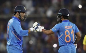 धौनी (72 गेंदों पर नाबाद 59 रन) और जाधव (87 गेंदों पर नाबाद 81 रन) ने पांचवें विकेट के लिये 141 रन की अटूट साझेदारी कर टीम की जीत सुनिश्चित की. कोहली ने मैच के बाद पुरस्कार वितरण समारोह में कहा, जिस तरह केदार और धौनी ने जिम्मेदारी से बल्लेबाजी वह देखना शानदार था. जड़ेजा ने किफायती गेंदबाजी की और दस ओवर में 35 से भी कम रन दिये. उसका क्षेत्ररक्षण भी कमाल का है.