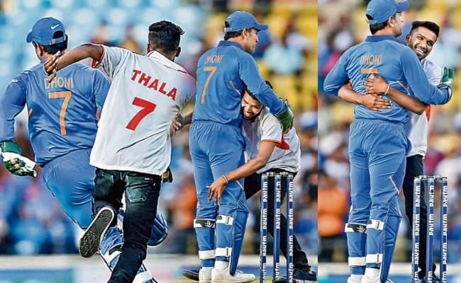 धौनी ने भी इस पल का भरपूर लुत्फ उठाया और पहले उस युवक को देखकर भागने लगे, फिर उसे छकाया और अंत में जाकर उसे गले लगा लिया. गले लगने के बाद उस युवक ने धौनी के पैर भी छुए. धौनी को इस तरह भागते देख टीम इंडिया के बाकी खिलाड़ी भी एंज्वाय करते दिखे. हालांकि बाद में पुलिस के जवान ने उसे पकड़ लिया और मैदान से बाहर लेकर चले गये.