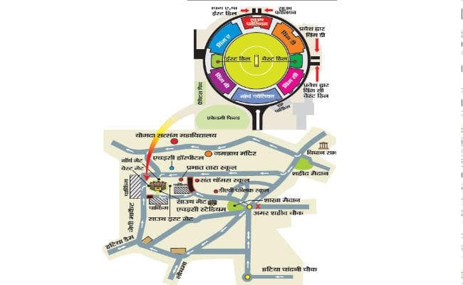 2. साउथ एंड साउथ-ईस्ट गेट : स्टेडियम के साउथ एंड साउथ-ईस्ट गेट तक पहुंचने के लिए दर्शकों को सेक्टर तीन में शहीद ठाकुर विश्वनाथ चौक से दाहिने शाखा मैदान के किनारे से मुस्लिम मार्केट होते हुए आगे जाना होगा. मुस्लिम बाजार के समीप वाहन पड़ाव की व्यवस्था रहेगी.