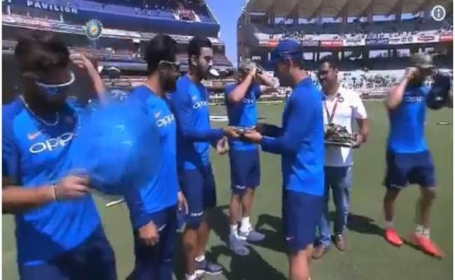 उन्होंने सभी से राष्ट्रीय रक्षा कोष में योगदान देने का आग्रह किया ताकि वह रकम सीआरपीएफ के शहीद जवानों के परिवारों के काम आ सके . कोहली ने कहा ,‘‘ यह खास मैच है .यह सेना के प्रति सम्मानसूचक है. हम इस मैच की फीस राष्ट्रीय रक्षा कोष में दे रहे हैं. मैं सभी देशवासियों से इसमें योगदान करने और हमारे सैनिकों के परिवारों के साथ रहने की अपील करता हूं. ” सेना में लेफ्टिनेंट कर्नल की मानद् रैंक से नवाजे जा चुके पूर्व कप्तान महेंद्र सिंह धौनी ने अपने साथियों को यह कैप दी और बीसीसीआई ने इसका वीडियो ट्विटर पर भी डाला है .
