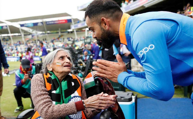 BCCI: Hello Charulata ji. #TeamIndia captain Virat Kohli promised her tickets and our superfan is here with us is in Leeds.😊 #CWC19(Pictures courtesy- BCCI) pic.twitter.com/8f1N7gqkV2