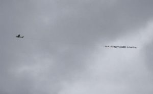 एक छोटे विमान ने ऑस्ट्रेलिया और इंग्लैंड के बीच सेमीफाइनल मैच के दौरान पांच बार घेरा लगाया और उस पर विरोध दर्ज कराने वाला बैनर लगा था. बैनर में लिखा था, ‘दुनिया को बलूचिस्तान (पाकिस्तान में एक प्रांत)’ के बारे में बात करनी चाहिए.’ यह पहली बार नहीं है जब छोटे विमान राजनीतिक संदेश के बैनर लेकर मौजूदा विश्व कप के दौरान दिखायी दिये हों.