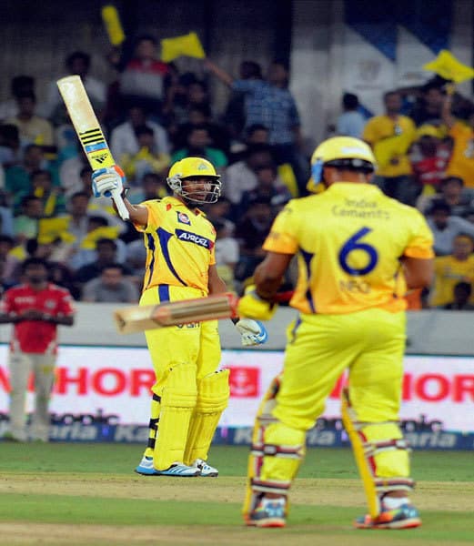 पंजाब के लिये अवाना ने 30 रन देकर चार विकेट और पटेल ने 30 रन देकर दो विकेट हासिल किये। बेली ने टास जीतकर क्षेत्ररक्षण का फैसला किया, जिसके बाद छह ओवर तक चीजें पंजाब के नियंत्रण में थी. तेज गेंदबाज अनुरीत और अवाना ने चेन्नई की खतरनाक बल्लेबाजी इकाई के खिलाफ नई गेंद से प्रभावित किया. अवाना की तेज गेंद ड्वेन स्मिथ :14: को बोल्ड कर गयी जबकि उनके सलामी बल्लेबाज साथी ब्रैंडन मैकुलम :06: परेरा की गेंद पर मिडविकेट पर कैच दे बैठे.