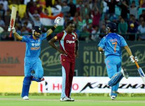 बायें हाथ के बल्लेबाज धवन हालांकि इसके बाद रसेल की शार्ट पिच गेंद को हवा में लहरा गए और डीप स्क्वायर लेग पर डेरेन ब्रावो ने आसान कैच लपका. रसेल के अगले ओवर में रहाणे को जीवनदान मिला जब टेलर ने फाइन लेग पर उनका आसान कैच टपका दिया. रहाणे इस समय 38 रन बनाकर खेल रहे थे.पिछले मैच में अर्धशतक के साथ फार्म में लौटे कोहली शुरुआत से ही लय में दिखे. उन्होंने रसेल के ओवर में दो चौके जडने के बाद स्पिनर सुलेमान बेन के ओवर में एक रन के साथ 19वें ओवर में टीम के रनों का सैकडा पूरा किया.