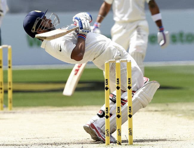 विजय हालांकि नौ रन बनाने के बाद जोश हेजलवुड की गेंद पर पगबाधा आउट हो गये. पहली पारी की तरह एक बार फिर भारत को संकट से उबारने की जिम्मेदारी कोहली और रहाणे पर थी. इन दोनों ने जानसन की शार्ट गेंदों का डटकर सामना किया और कई आकर्षक शाट खेले. दोनों ने 18वें ओवर में टीम का स्कोर 50 रन तक पहुंचाया.