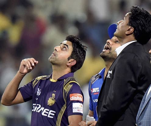हरभजन हालांकि आखिर में पांडे को आउट करने में सफल रहे जिन्होंने लांग आन पर कीरोन पोलार्ड को आसान कैच थमाया. इस आफ स्पिनर को जल्द ही दूसरा विकेट भी मिल जाता लेकिन उन्होंने अपनी ही गेंद पर गंभीर का कैच छोड दिया. गेंद चार रन के लिये चली गयी जिससे गंभीर का अर्धशतक पूरा हुआ. गंभीर का विकेट आखिर में जसप्रीत बमराह को मिला. रायुडु ने डीप स्क्वायर लेग पर कैच लपकने में गलती नहीं की.
